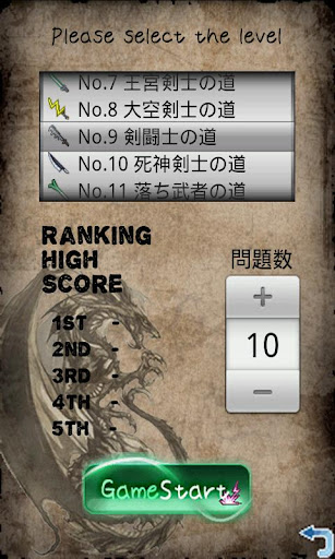 ※ゲームの出題数は10問~100問から選択出来ます。