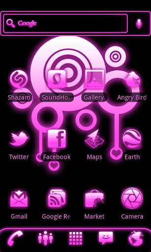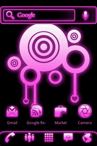 A ultra-detailed Pink and Black Glow ADW Launcher Theme.
