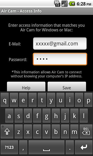 Air Cam lets you view live video feed from your computer's webcam directly on your Android device using your home Wi-Fi networks and 3G networks.