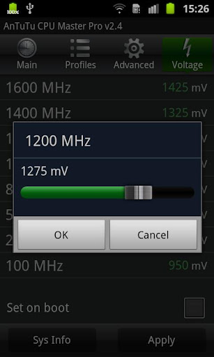 CPU Master's OverclockWidget show the CPU and battery stats, and change the CPU speed faster and simple.