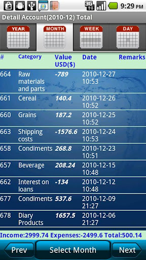 • Daily,weekly and monthly details and summaries
