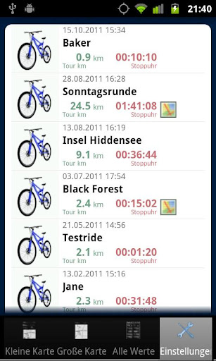 - Deine Touren (KML und GPX) per Email zur Betrachtung zu Hause (z.B. mit Google Earth) oder zum Austausch mit anderen Radfahrern.