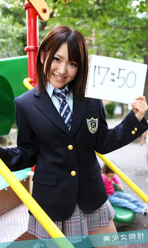 美少女時計は可愛い制服姿の美少女が時をお知らせする時計アプリとして、学校や公園などでオリジナルに撮影された画像が1分ごとに表示されます。写真はサーバーに通信を行い、随時新しい写真が反映されます。(パケ放題以外の方はご注意ください。)