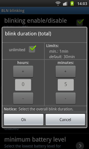 * einstellen der Gesamtblinkdauer (5-60 Minuten oder unbegrenzt)