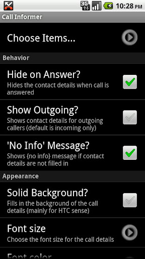 ☛ HTC Sense: Call Informer können sich überschneiden Ihre vorhandenen Bildschirm für eingehende Anrufe info, ich bin auf einigen Workarounds arbeiten dafür. Für jetzt empfehle ich dem Einschalten des soliden Hintergrund Option, und verwenden Sie die vertikale Position Präferenz Bildschirm, um die Anzeige für die beste Passform. Wenn Sie tippen deaktivieren, können Sie immer noch mit dem, was sich hinter Anruf Informer interagieren - es ist nur eine visuelle Überlappung.