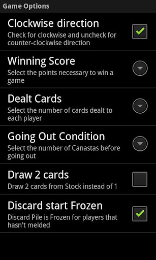 Diese Version bringt die Classic Canasta Regeln mit vielen Variationen. Außerdem können Sie anpassen, das Spiel ganz nach Ihren Wünschen: Background Bilder, Back-Karten Bilder, Animationen Geschwindigkeit, komprimierten verschmilzt auf dem Tisch (ideal für Geräte mit kleinem Bildschirm), Hoch-oder Querformat.