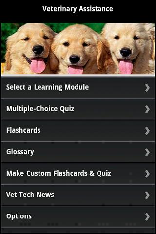 This study guide app is for people who need to develop foundation knowledge of veterinary medicine and veterinary technology; animal sciences and typical behavior characteristics of animal species; role in patient history, physical exam, and client educations. It covers veterinary terminology; animal anatomy; physiology; office business operations; and veterinary emergency care.