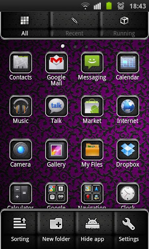 Dies ist unser drittes Theme. Elegant Thema 4 Go Launcher Ex. Die Kombination aus Leder und Silber verleiht diesem edlen Theme seinen Namen. Elegant Theme 4 Go Launcher Ex. Aber es ist nicht nur der Style der Icons der dieses Theme besonders macht. Durch die sechs ausgewählten Wallpaper, die dazu passenden App Drawer Hintergründe, die alternative Dockbar, das neue Ordner Interface und das komplett neu gestaltete Go Launcher Ex Menü bekommt dein Android Handy einen völlig neuen und einzigartigen Style.