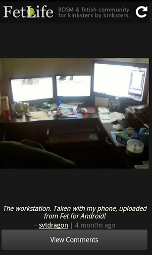 FetLife for Android(TM) is the social app for all your FetLife needs--one of the top paid social apps on the Android Market! Please let us know if you have any problems. Note that this app makes heavy use of swiping to scroll between tabs, like the Android home screen, so if you see the little red tab indicator at the bottom, give it a try!