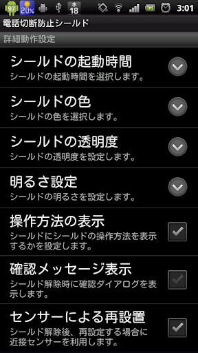設定で、「センサーによる再設置」にチェックをしていただければ、シールドを解除した後に受話部付近にある近接センサーの前が暗くなるとシールドを再設置します。