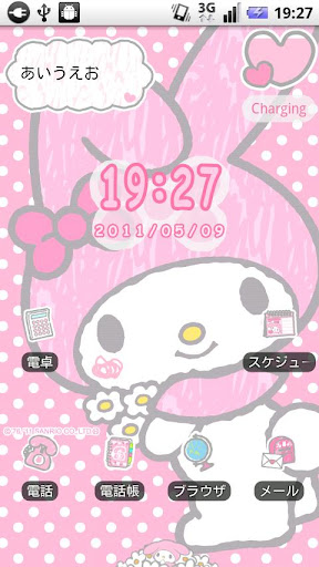 キャラクターホームのインストールが完了いたしましたらホームボタンを押し、[マイメロディ]キャラクターホーム を選択して下さい。