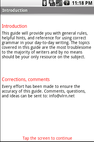 | Name: Grammar Guide Entwickler: Glen Hunter Preis: Größe: 129k | Version: 1.0 minimale Android Version: 1.1 oder höher Kategorie: Bücher & Nachschlagewerke Download: Look at the bottom of the page |