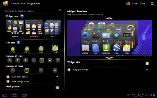 * Stack widgets: since Android 3.0 you can create stack widgets, in which you can swipe up and down to scroll through the Launch-X screens.