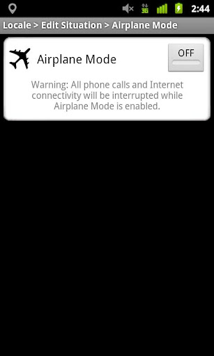 | Name: Locale Airplane Mode Plug-in Entwickler: two forty four a.m. LLC Preis: Größe: 30k | Version: 1.3 minimale Android Version: 1.5 oder höher Kategorie: Tools Download: Look at the bottom of the page |