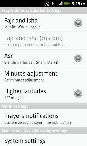 * Angle/Minutes used for fajr and isha (Contact us if you want other "official" settings to be included in the app by default)