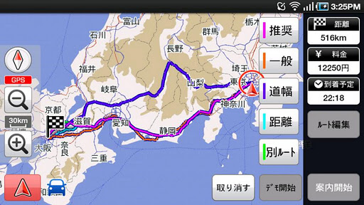 ・アプリ起動中に着信や通話を行った場合やナビアプリ以外に多くのアプリケーションを起動していた場合、ナビアプリが終了することがありますのでご注意ください。