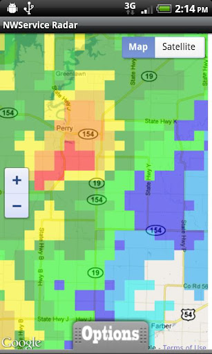 Displays real-time local and national weather radar directly from the National Weather Service on Google Maps in an easy to use program. Zoom in/out, loop weather radar images, current storm warnings, satellite images, total precipitation, current location forecast from the National Weather Service including current watches and warnings, and much more! Full options menu allows you to change tons of settings and customize your experience.