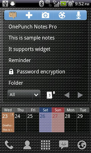 OnePunch Notes Pro is a convenient notepad application that is simple but powerful. It provices many features like calendar, password protection, photo/paint/voice record/music file attachment, Todo list, and folder management.