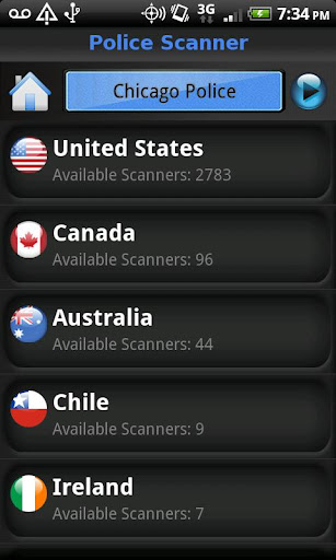 Police Scanner brings you more than 2,500 police, fire, rescue and other radio feeds over 3G or WiFi. You can search for channels in the U.S. and other countries by country, state or province and county. Find channels close to your location based on GPS or 3G/WiFi triangulation. You can save your favorites, listen in the background, and get instant access to new feeds as they come online.