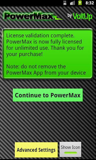 Sobald die Testphase vorbei ist, kann PowerMax Benutzer, die nicht im Einkauf eine wichtige interessiert sind noch weiter verwenden PowerMax in seiner Lite-Version. Dieser Lizenzschlüssel wird nicht fügen Sie eine neue Anwendung auf das Telefon - es wird Ihnen in voller PowerMax Funktionen nicht nutzen.