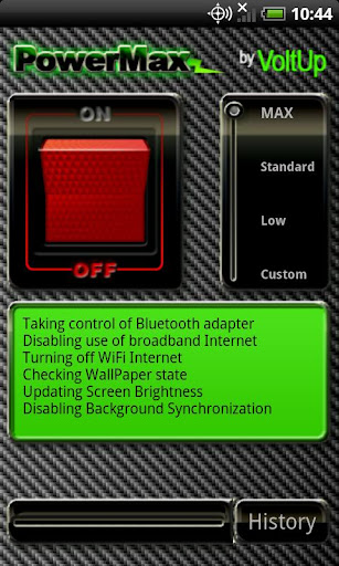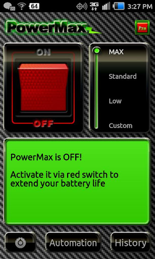 PowerMax ist eine mobile Anwendung, die Ihnen helfen verlängern die Lebensdauer des Akkus Ihres mobilen Geräts werden. Wenn man unterwegs und feststellen, dass Sie mobil ist kurz davor zu sterben, oder wenn Sie wissen, es wird ein langer Tag werden bis zu Ihrem nächsten Ladung, schalten Sie PowerMaxPowerMax speichert Ihre Batterie und bessere Energieverwaltung für Sie.