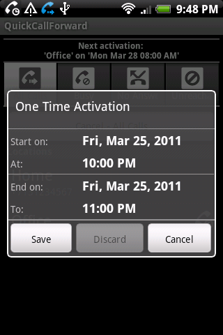 * Enable automatic activation/deactivation for 'All calls' forwarding