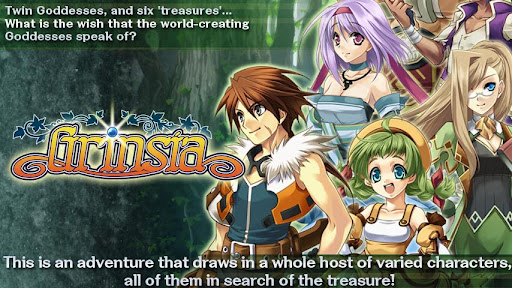 'Grinsia' is a fantasy RPG, with a quest involving twin Goddesses, and six pieces of treasure. The main characters are a family of treasure hunters, and they are joined by a wide range of other characters.