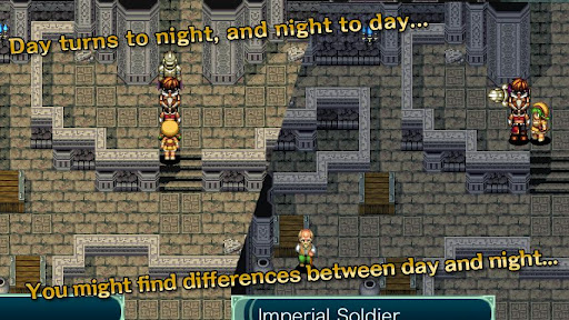 As time passes, the game changes between day and night. The appearance of towns and open land, and the way the game progresses, differ between day and night.