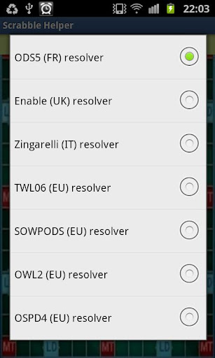 * Die Anwendung verwendet das Wörterbuch ODS5 Französisch (offiziell Wörterbuch des Spiels, in seiner neuesten Version)