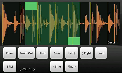 Grundfunktionen: TAP "inside" den ausgewählten Bereich, um nur zu spielen die Auswahl. Stellen Sie den "LOOP"-Taste, um Schleife die Auswahl, wenn es spielt. TAP "außerhalb" des ausgewählten Bereichs, um den Song normal abzuspielen.