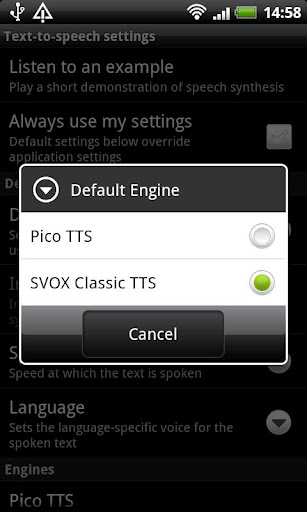 2. On Android 2.1 and earlier, only some apps, like Google Translation, support changing voices.