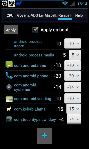 Note: The background service for monitoring processes to renice them causes no increased battery drain!