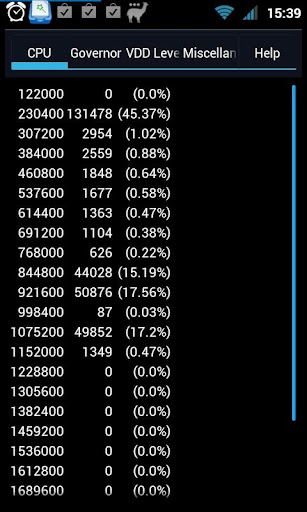 - Realtime CPU Clock Speed and "Time in State"-View of each Core/CPU