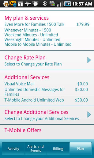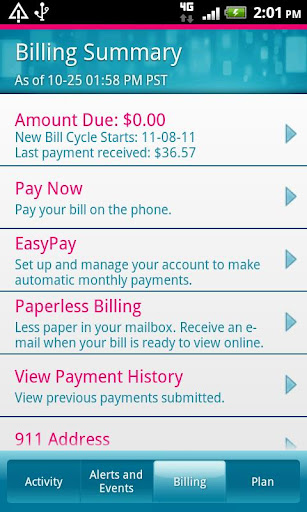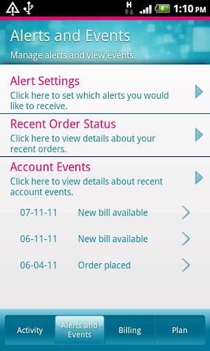 • Track events such as plan changes, billing activities, handset order status and more.