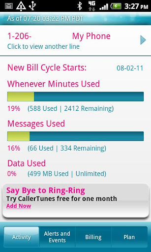 • View voice minutes, messages, and data used and remaining.