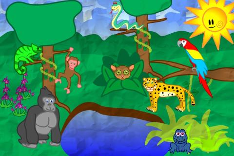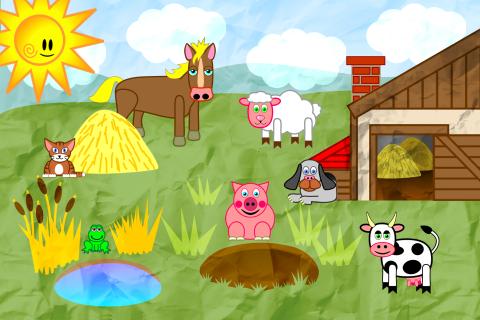 Die App beinhaltet FÜNF verschiedenen Gebiete: Bauernhof, Schneelandschaft, Wüsten-Oase, Dschungel und Ozean!