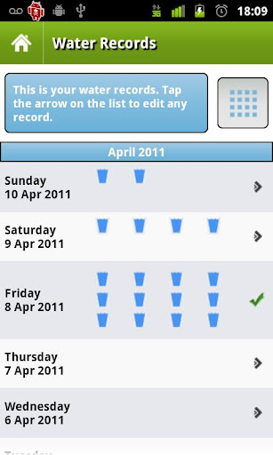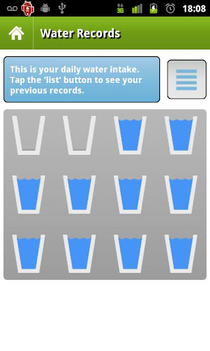 • Satz-Gedächtnishilfen, um Ihnen zu helfen, um sich zu erinnern, Wasser im Laufe des Tages an anpassbaren Zwischenräumen zu trinken