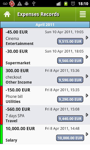 • Registriert Ihre Ausgaben, die verschiedene Kategorien verwenden, so dass Sie leicht sehen können, wohin Ihr Geld geht!