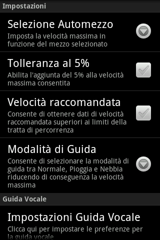 L'app è completamente personalizzabile, consente ad esempio, di impostare l'eventuale tolleranza al 5% (i tachimetri delle auto sono tarati per segnare una velocità superiore rispetto a quella reale), il mezzo in uso (auto, camion,bus), o indicare semplicemente se sul tratto che si sta percorrendo sta o meno piovendo o se vi è nebbia(in questi casi il limite di velocità sarà adattato di conseguenza).