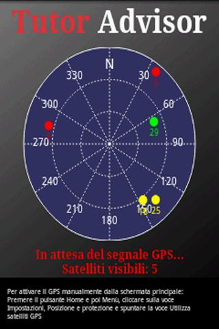-La visualizzazione dello stato dei satelliti gps ed il loro posizionamento in attesa della ricezione del segnale