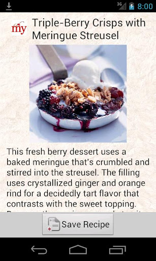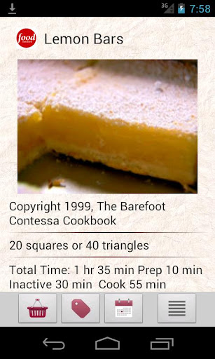 Online search includes recipes from FoodNetwork.com, Epicurious.com, AllRecipes.com, and MyRecipes.com (which provides recipes from several magazines includeing Food & Wine, Cooking Light, and many more).