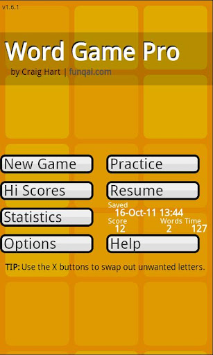 Use the menu button to change preferences such as the min and max word length that you would like to see in the results as well as the game that you are playing.