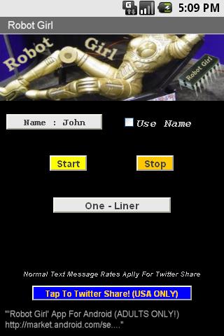 'Robot Girl' is the app that EVERYONE has been waiting for but NO developer was willing to write! Robot Girl is an app that randomly speaks VERY dirty sex talk by the female voice on your Android phone. Great for work, bar or college classroom humor!
