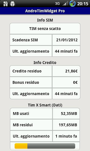 *** ATTENZIONE La data e l'ora presenti in alcune widget si riferisce SOLO ed esclusivamente all'ultimo addebito avvenuto sul CREDITO, tale data ci viene comunicata da Tim tramite sms.