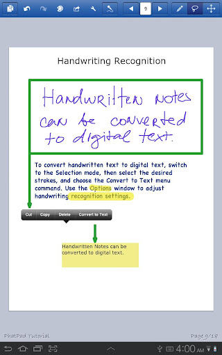 * A powerful handwriting recognition engine (for English language, support for more languages coming soon), which automatically converts handwritten notes into text;