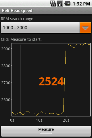 Heli-Headspeed misst die Rotorkopfdrehzahl von RC- Modellhubschraubern. Dazu wird das Blattgeräusch aufgezeichnet und das Frequenzspektrum analysiert.