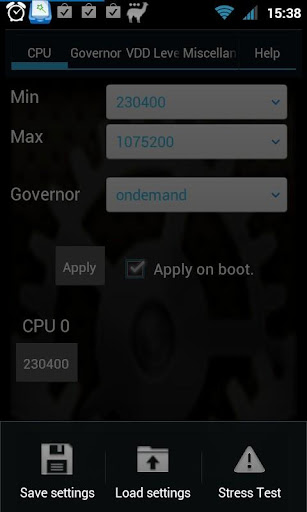 NOTE2: The CPU Stress function is quite simply. It does stress the cpu fine but to verify stability more than this is needed. so running this test for an hour does not mean your undervolting will not crash you phone ;)
