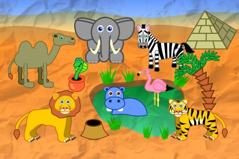 Die App beinhaltet FÜNF verschiedenen Gebiete: Bauernhof, Schneelandschaft, Wüsten-Oase, Dschungel und Ozean!