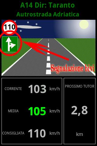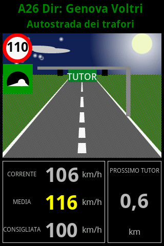 L'utente è avvertito quando entra in una tratta tutor e quando inavvertitamente supera la media massima consigliando una velocità per abbassarla.