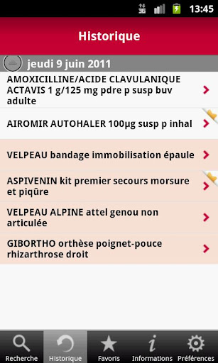 - L’accès à l’historique des fiches consultées